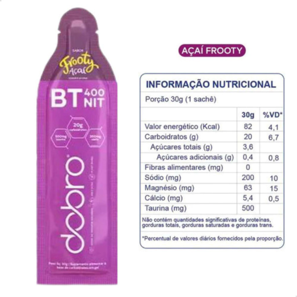 O Carbo Gel BT Nitrato sabor Açaí Frooty da Dobro oferece uma fonte rápida de energia para atletas de alta performance, com o benefício adicional do nitrato para aumentar a resistência. Com o sabor refrescante do açaí, este gel é perfeito para ser consumido durante treinos e competições, garantindo energia constante e hidratação eficaz.