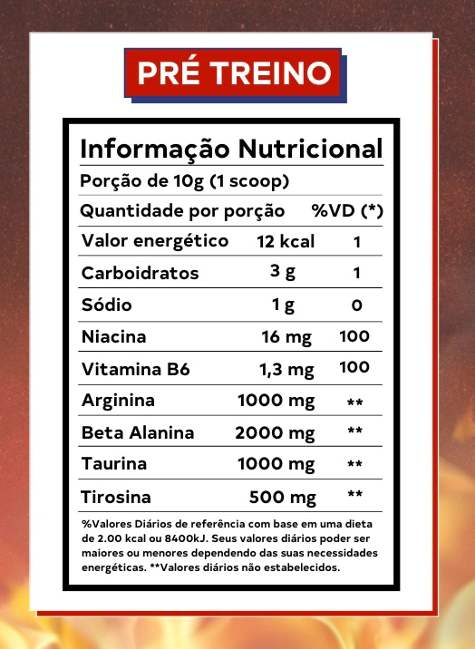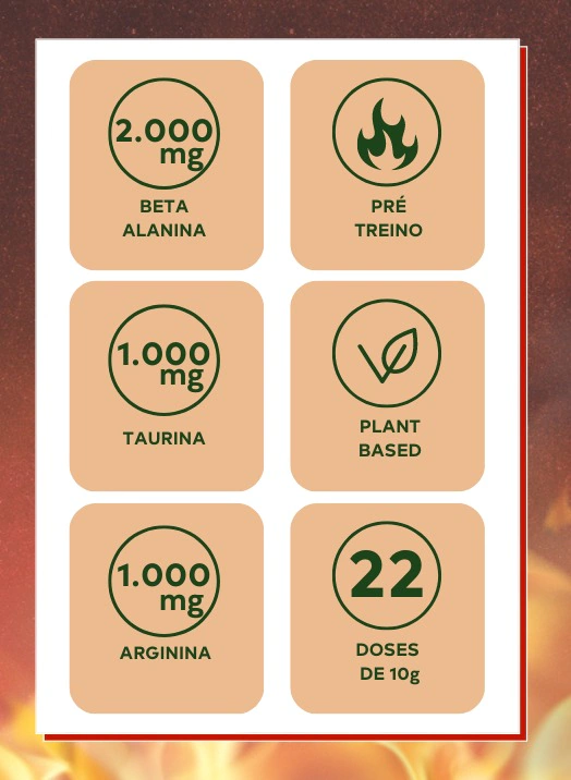O Pré-Treino FOGO é um suplemento com 2.000mg de Beta Alanina e 1.000mg de Taurina, perfeito para te ajudar a entrar em ação! Seu sabor Limão com Matchá contrasta perfeitamente o aquecer do treino com a suavidade e refrescância.